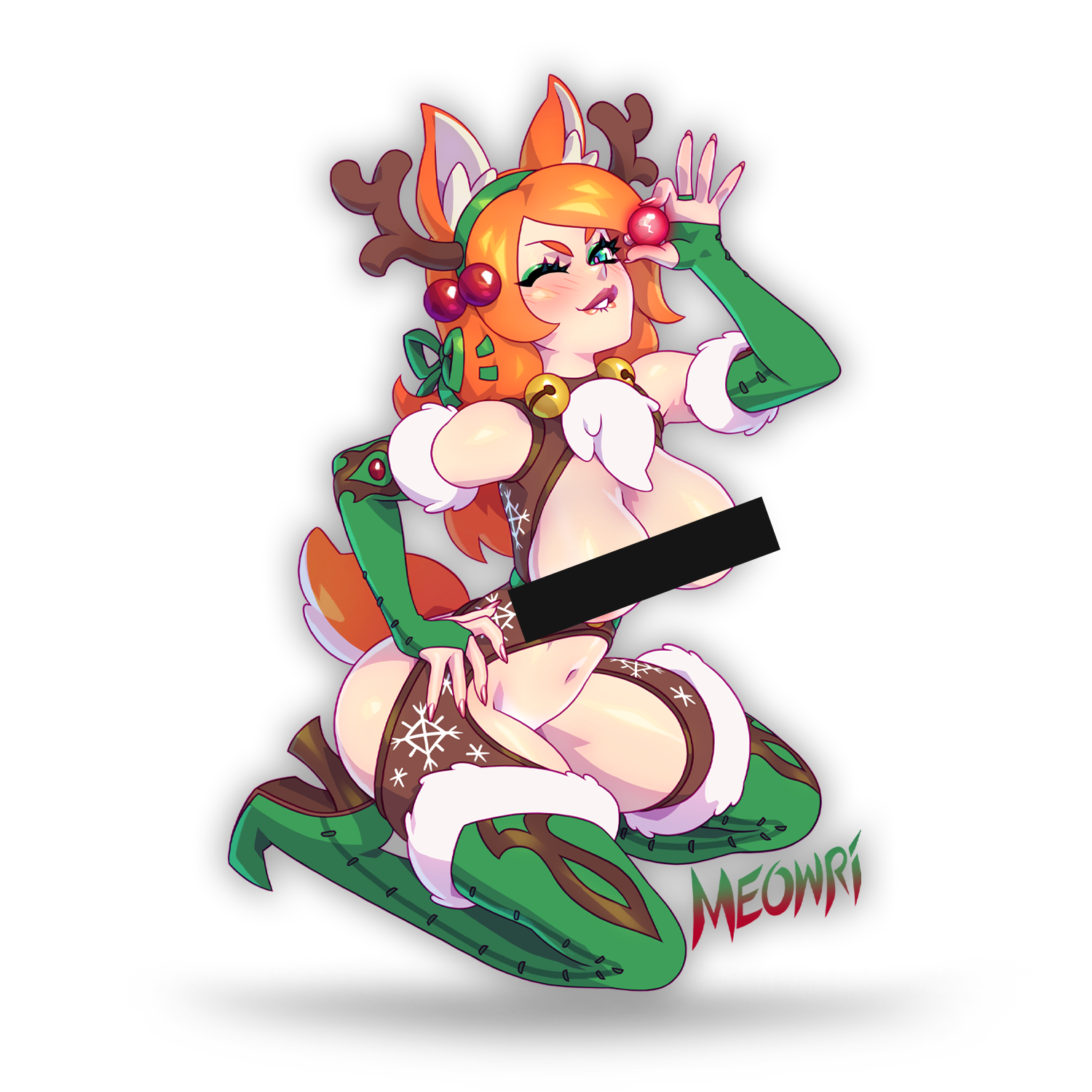 Meowri's 4 Piece Sticker Pack in reindeer themed lingerie includes naughty and nice art pieces.